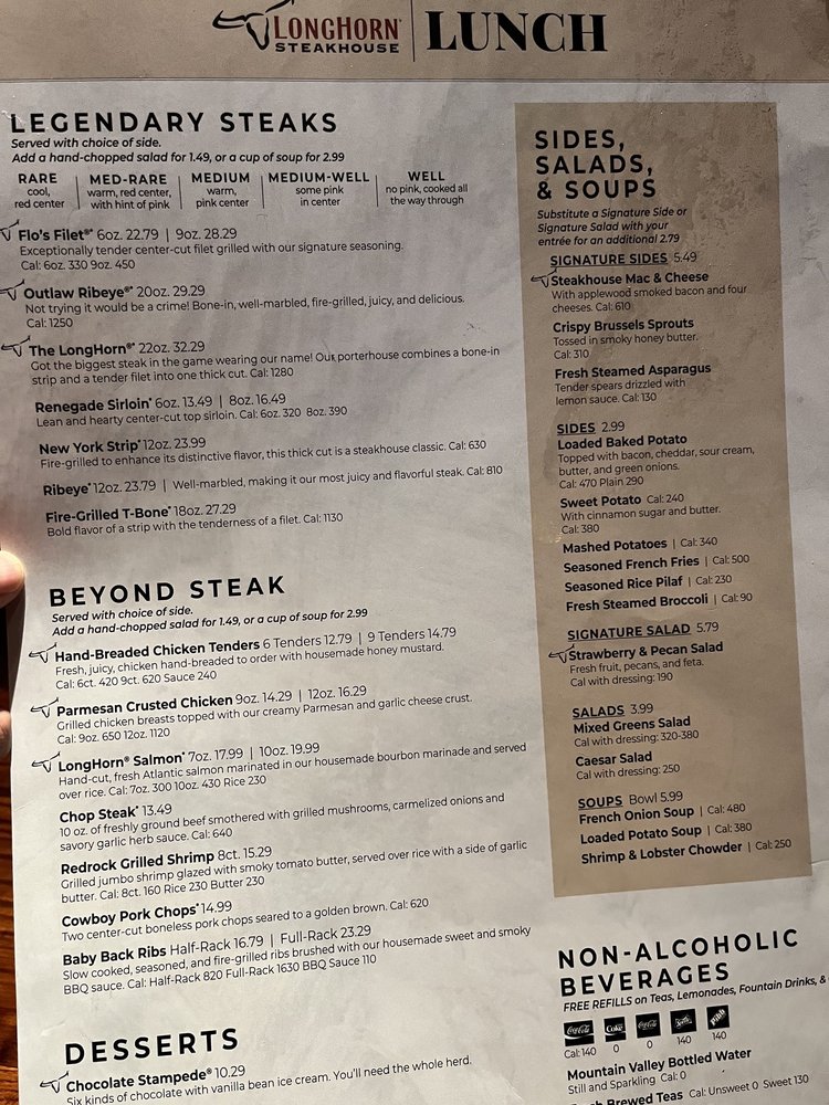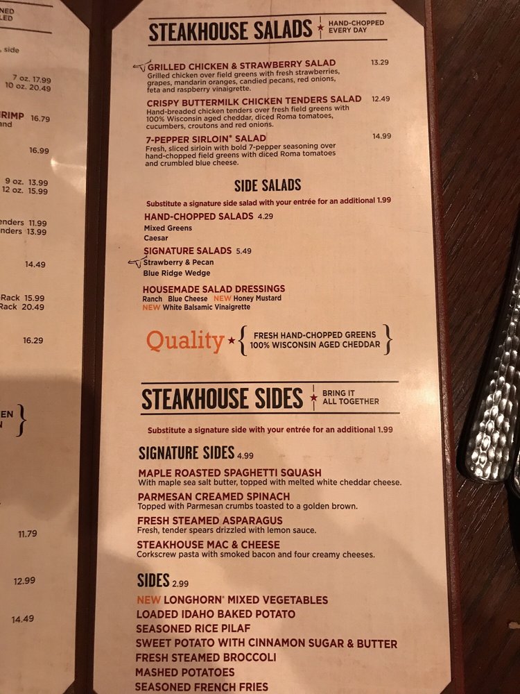Try 1 of Longhorn's 2 hand-chopped side salads with your meal. Order either a caesar or mixed green salad today.